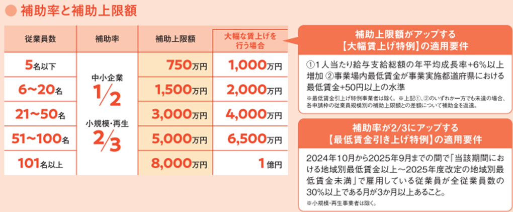 | 従業員数 | 補助上限 | 大幅賃上げ特例 |