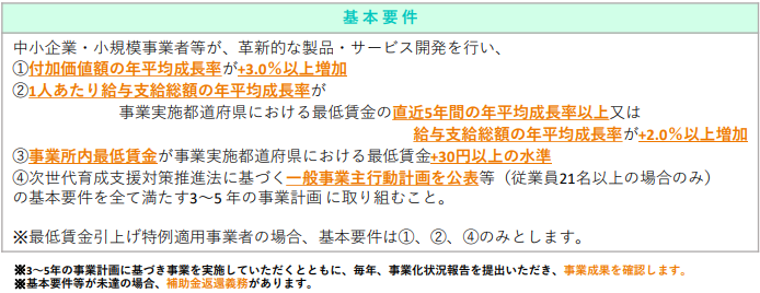 ・要件: 補助事業終了後3年間、給与支給総額を年率平均 +4.5%以上増加させること。