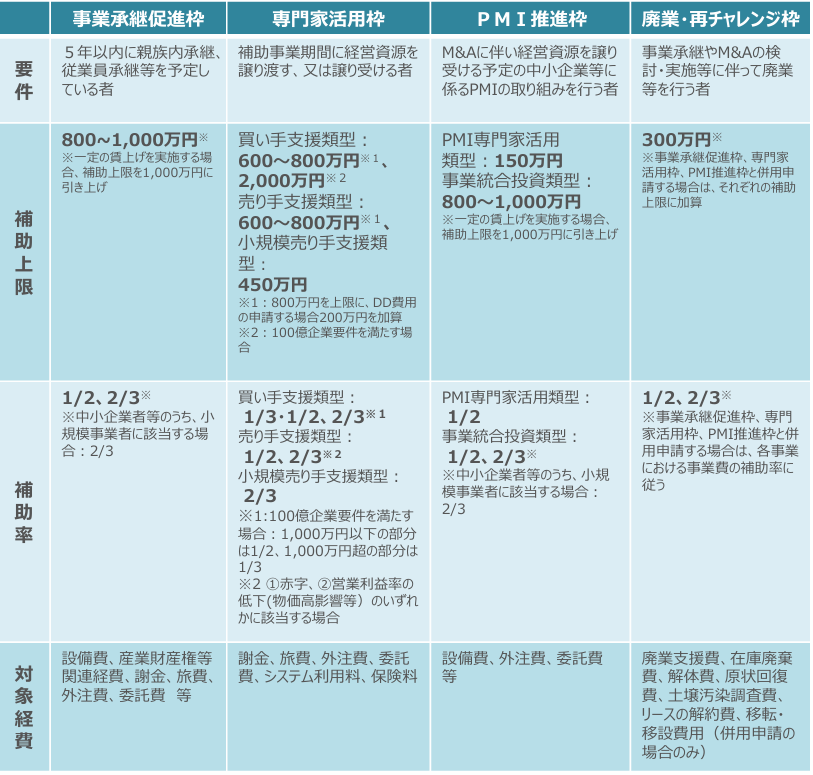 - ※小規模なPMIの場合は上限が低くなる区分もあります。