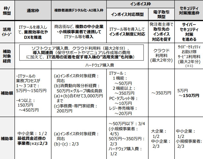 ※会計・受発注・決済ソフトに加え、PC・タブレット・レジ・券売機のハードウェア購入が対象になる唯一の枠です。